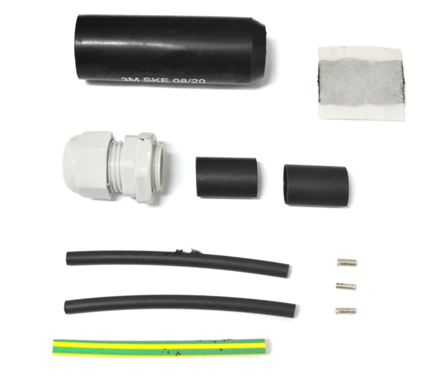 For mounting in connection box with crew connections. With cable gland M20x1,5 with locknut, shrink end-cap, shrink tubes, bitumen gasket and ferrules.